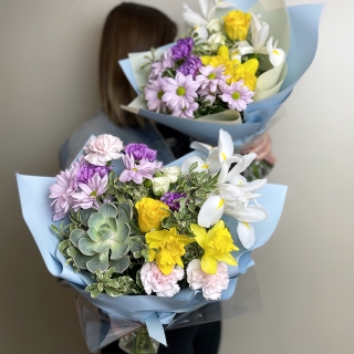 Фото получателя с букетом